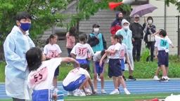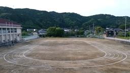 明け方から降り続く小雨で,水はけがいい本校の運動場もさすがに厳しくなってきた午前7時,保護者の皆さんのご協力で,運動会準備を始めました。必ず止むという確信はありませんでしたが,天気予報を信じました。結果として,当初は小雨がぱらつくことはありましたが,それ以降は雨も止み,運動会を最後まで行うことが出来ました。徒競走で児童が滑る度に砂入れを手伝って下さった保護者の皆さん,最後まで後片付けに協力して下さった皆さん,本当にありがとうございました。ただ,雨の影響もあったとはいえ,我々の当初の読みが甘く時間が足りなくなり,結果としてPTAの皆様が楽しみにしていたPTA種目「じゃまじゃま玉入れ」と,参加者全員で一緒に踊るはずの「能登は門前 寺の町 出湯町」を行うことができず,誠に申し訳ありませんでした。また,運動会後に予定していた「児童引き渡し訓練」も延期となったこと,重ね重ねお詫びいたします。