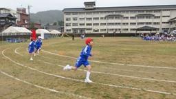 準備運動「ラジオ体操第一」の後,くしひ保育所の出番が続きました。その後,低学年の「100m走」,高学年の「150m走」を行いました。徒競走は完全セパレートで行ったので,一部滑ってしまう児童が出てしまいましたが,後続の児童とぶつかるということはなく,完全セパレートで行ったことは,結果的に大成功でした。次の「全校親子大玉ころがし」では,最後のペアまで接戦が続き,大いに盛り上がりました。勝負は白の勝ちでした。