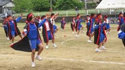 次は,「全校よさこい」です。児童にとって2年目の余裕がありました。途中の振り付けは今年度バージョン。マンネリ防止です。時間の関係でアンコールは「なし」でした。最後は,2年ぶりに復活した「全校リレー」です。練習で大きな声で応援してしまうためしっかり注意されていましたが,この日はちゃんと大きな拍手で応援できていました。勝負は引き分けでした。結果として,全員が優勝。赤白のリーダーが優勝賞状を,副リーダーが優勝トロフィーをともに掲げました。素敵な光景でした。