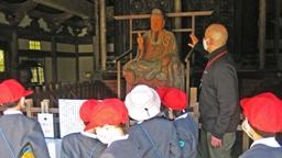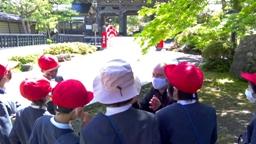 生活科の時間にまちたんけんに出かけました。先日行われた交通安全教室で習ったことをふり返り、交通ルールに気をつけながら、学校の周りを歩きました。当日はゲッペルト先生が来校される日だったこともあり、総持寺にも行きました。今回は時間が少なく、すべての建物を見てまわることはできませんでしたが、「山門」、「経蔵」、「坐禅堂」を見学しました。ゲッペルト先生の詳しい解説もあり、普段は入れないところにも入ることができて、子どもたちは目を輝かせながら見学していました。子どもたちも気になることがたくさんあったようで、質問が絶えない場面もありました。残念ながら、遠足は延期になってしまい、総持寺に行くこともできなくなってしまいましたが、今後も生活科の時間などで、総持寺の勉強をしていきたいです。(水岡)