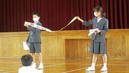 プログラム5番 5年「門前東小学校のヒーロー」 みんな大きな声で,さすが5年生でした。