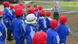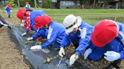 生活科の時間に,昨年まで本校においでた田下先生の畑で,さつまいもの苗植えを体験しました。天気にも恵まれ,長袖・長ズボンは暑いほどの陽気でしたが,楽しく植えることができました。今回植えた苗は秋ごろに収穫する予定です。みなさんが心を込めて植えた苗がどのように成長しているのか楽しみですね。また,保護者の皆様には突然のお願いになってしまいましたが,長靴,軍手,水筒などをご準備いただきありがとうございました。おかげさまで,楽しく安全に苗植え体験をすることができました。(水岡)