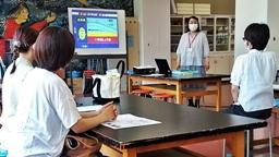 NTT西日本の沖野さんをお招きし,ICT校内研修会を行いました。今回は,クロームブックを使ってオンライン会議を行う研修でした。職員のスキルがさらに向上したので,児童の皆さんには,2学期を楽しみにしてもらえたらと思います。