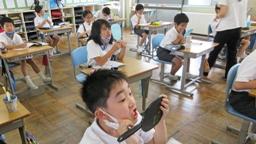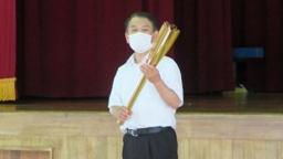 式の後,6年生の男子児童は「夏休みは自宅ですいか割りをしました。新型コロナの影響で出かけることができず,少しつまらない夏休みでした」と話していました。