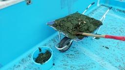 同時並行して,児童一人一プランターの土も入れました。ユンボを提供してくださったHさんのおかげで作業はスムーズに進みました。土は,昨年のプランターで使い終わった土に腐葉土を混ぜたものです。これもユンボで行いました。
