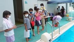 本日(7月29日)は,水泳教室がない日としては初めてのプール開放日だったこともあり,子供たち,いつも以上に大喜びで元気いっぱい泳いで(遊んで)いました。 これまでの3日間,平均25名が来ています。まだまだたくさんの子供たちに来てほしいですね。(右写真は,泳ぎ終わって着替えた低学年児童たち。)