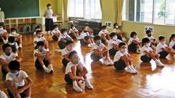 3階理科室にて「火災」が発生したという想定で,避難訓練を行いました。この日は生憎の雨だったため,体育館への避難でした。昨年度まで本校児童は,避難訓練終了後に注意されることがしばしばありました。「本番」ではなく「訓練」だという思いがあるためか,緊張感が足りない児童が一部いたためです。しかしこの日は違いました。全校児童が最後まで気を抜くことなく真剣に避難。校長講評で,おおいに褒められたのです。今後も,「地震・津波・土砂災害・不審者」など大切な避難訓練を予定しています。練習でできないことは,本番でもできません。しっかりがんばりましょう。