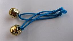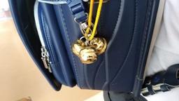 左写真は,全校児童一人に一つずつ配付した「鈴」。中央写真は,自ら購入した「熊鈴」を下げている児童。右写真は,そのアップ。全校配付鈴に比べてかなり大きく,しかも熊鈴が3つもついていることで,賑やかに大きな音が鳴ります。