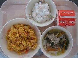 カレーの時は、低学年の子もたくさん食べたいようで、もう少し食べる?と聞くと嬉しそうに手をあげています