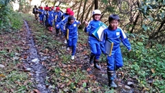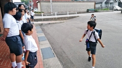 始業式翌日(1年生が初めて自分で家に帰る日),全校で集団下校を行いました。学校のすぐ裏の「もんぜん児童館」に向かう児童が多く,安心しました。これからも安全に気をつけて下校して下さいね。