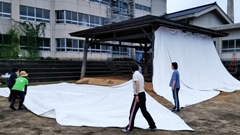 なお,入学式において,来賓の招待は見合わせます。ご理解下さい。(1年生へのランドセルカバー贈呈式は,1年教室で行います。この場には,交通安全協会門前支部長さん,門前交番所長さんをお招きする予定です。)
