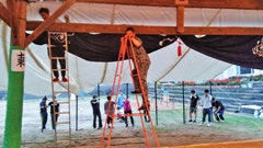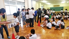 今年の職員の出し物(中央写真)は,6年生との対戦ゲームです。長縄跳び,玉入れ,輪くぐり。結果,空気の読めない職員の2勝1敗となりました。玉入れなどは,経験の差がでましたね。