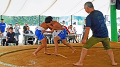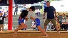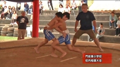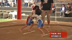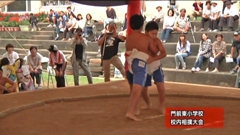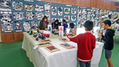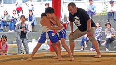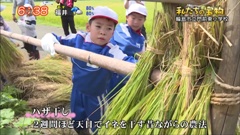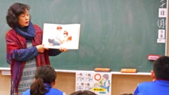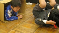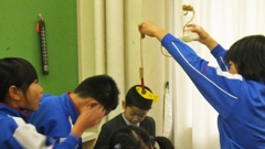 2年生の劇(左写真)は,「江戸時代の門前町」でした。人々が力を合わせて鬼に立ち向かうところ,そして仲良くなるところがとっても良かったです。特別ゲストの平向君も格好良かったですね。