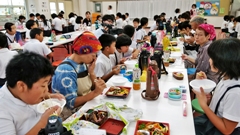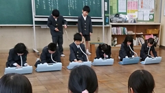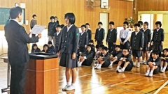 児童会役員,学級委員の任命式を行いました。通常この会は給食が終わった後で,そのままランチルームで行っています。しかし現在は,新型コロナウイルス感染症予防の観点から,全員同方向を向き,会話禁止という状況で給食を食べています。(スペースの関係で6年生は教室で食べている。)そこでこの日は,6年生にも集まってもらい,食事の前に行いました。任命された皆さん,門前東小学校,そしてその児童たちのために,がんばって下さい。