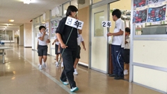 校長室で校長相手にテストをし,合格者にハンコを押すという試みで,4年生の市町村&都道府県名暗記学習を行っています。長休みや昼休みの校長室が賑やかです。