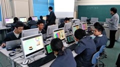 新型コロナウイルス感染症対策として,急速的に進むテレワーク。本校でも,テレワークとは違いますが,職員室の密度を薄くするため,一部職員が別室で仕事をしています。ここパソコン室もその一つ。この日は田中先生のオンライン研修日でした。(コロナ関連で,金沢で集まっての研修のはずが,それぞれの学校でのオンライン研修になった。)