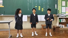 3年生の劇(右写真)は,「せっとく大作戦!」でした。些細なことでケンカした二人を仲直りさせようと次々にトライするところが面白かったです。最後のダンスもみんな楽しそうでしたね。