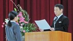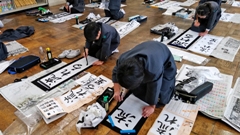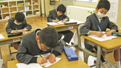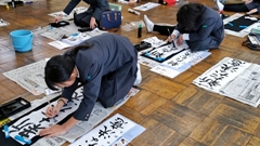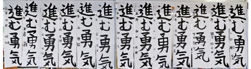 冬休みの特訓の成果がはっきりと出ていました。2学期末の書写で書いた文字とはあきらかに違う素晴らしい文字が次々に児童の持つ筆(1・2年生は鉛筆)から流れるように書かれたのです。28日(火)の授業参観日まで掲示しますので,その際は是非ご覧下さい。各学級ごとに2割程度の児童を入賞者とし,表彰しました。いい作品が多く,選考は難航を極めました。