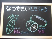 今日は、今が旬の苦瓜と冬瓜を使いました。どちらも沖縄でよく食べられている食材で、苦瓜はゴーヤー、冬瓜はシブイと呼ばれているそうです。夏バテ予防になるのと、苦い味にも少しずつ慣れて欲しいので、毎年一回ゴーヤーを出しています。年々「ゴーヤー好きだよ」という子が増えているような気がします絵文字:笑顔