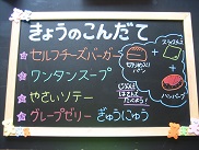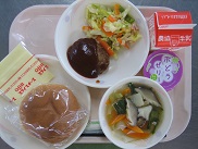 今日は切り目の入ったバーガーパンにハンバーグとチーズをはさんで食べました。野菜ソテーも一緒にはさんでいる子もいました。デザートのぶどうゼリーは冷たくておいしかったです絵文字:笑顔