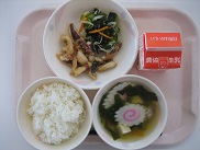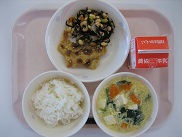 今日は大豆や枝豆、豚肉とひじきを一緒に煮た、磯煮がおいしかったです。かきたま汁は、卵を入れる前に、でんぷんで薄くとろみをつけています。きれいなかきたま汁に仕上がります絵文字:笑顔