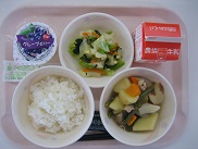 今月は門前で作られている胡瓜を使用しています。また、イカも地元産です。地元の食材がとれる時は、給食でも可能な限り使用しています絵文字:笑顔