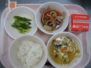 今日は「地場産物給食」でした。鹿磯漁港にあがったスルメイカと、町野で作られているグリーンアスパラガスを提供していただきました。おいしい旬の地場産物を、おいしく食べられるように調理員さんたちが工夫して料理してくれました絵文字:良くできました OK