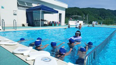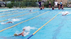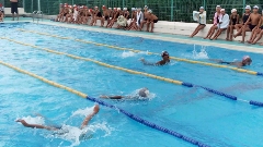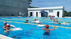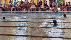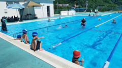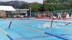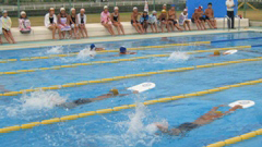 5年以下男子25m自由形 4年N君25秒1,5年S君24秒4,4年S君27秒6,4年Y君22秒7,5年H君21秒2,5年H君(右写真7レーン)22秒7,5年N君20秒7