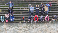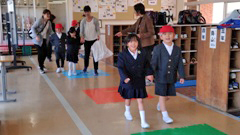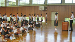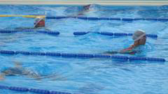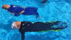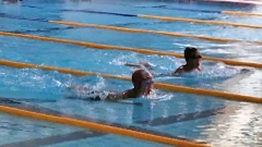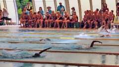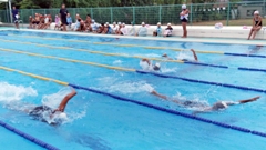 5年以下女子25m平泳ぎ 2年Kさん(中央写真4レーン)36秒8,5年Oさん42秒9,5年Mさん38秒4