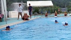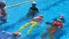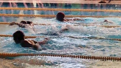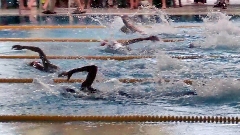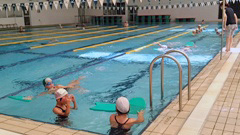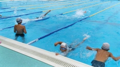 5年以下男子25mバタフライ 4年N君(右写真2レーン)40秒0,4年S君(右写真3レーン)56秒8,5年S君(右写真4レーン)34秒3(6位),4年Y君(右写真5レーン)30秒4(5位),5年H君30秒3(4位),5年H君37秒5