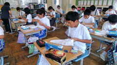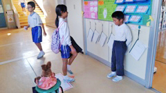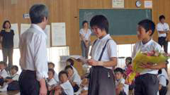 市民温水プール「サン・プルル」にて,第30回市小学校水泳記録会が行われました。今回から6年生種目を中心に,大きく変わりました。これまで50mだった6年生種目が,5年生以下同様,25mになったのです。その他,男女リレーも,200mが100mになりました。近年,参加者の減少に悩んでいたこの大会ですが,ひとまず今年は参加者が増えたそうです。本校は,そのことには関わりなく参加児童が多く,22名もの参加(市内4番目)がありました。今回は,全22名の写真を交えながら,本校児童が出場した全ての競技について紹介します。(児童名は出場順。同じレースの場合,レーン順。)なお,1レーンは一番奥,7レーンが一番手前です。また,順位は6位以内のみ紹介します。入賞者は,のべ人数で,2位4人,3位5人,計9人で,市内小学校の中で3番目に多い人数でした。