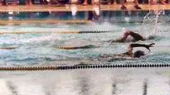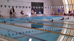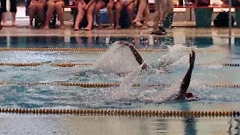 6年男子100m個人メドレー K君(左写真3レーン)2分18秒4(2位),S君(左写真5レーン)2分38秒9(3位)
