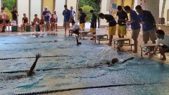 5年以下男子25m背泳ぎ 5年N君(右写真2レーン)45秒7,5年H君(右写真3レーン)36秒6(4位)