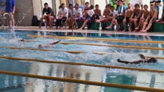 6年男子25mバタフライ I 君(中央写真2レーン)3位24秒5(3位),N君(中央写真5レーン)25秒1(4位)