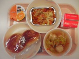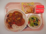 今日はカレーにミニカツをのせて食べました。デザートもあって、ボリューム満点でしたが、誰も残さず、早くに食べ終わりました。もうすぐ卒業式。6年生と一緒に給食を食べるのもあと2回です絵文字:泣く