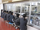 今日は午前中に、配送校である門前西小学校の6年生が調理場見学に来てくれました。ちょうど野菜を包丁で切る作業を見てもらいました。みんな興味津々でした