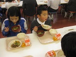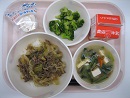 今日は牛丼をおいしそうに食べていました。具だくさんのみそ汁やブロッコリーも、誰も残す人はいません。この調子でしっかり食べて、風邪も予防して欲しいですね