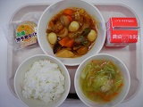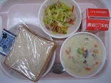 今日は、五郎島金時さつまいもを使ったシチューでした。じゃがいものシチューとひと味違って、甘みのあるシチューです。おかわりする子がたくさんでした