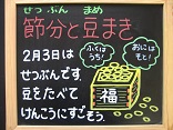 今日は節分ということで、節分豆を出しました。豆を食べて、病気に負けない健康なからだをつくって欲しいですね