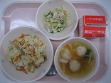 今日はすきやき風煮に、車麩を入れました。こどもたちは車麩のことをあまり知らないようでした。甘辛い味がよくしみこんでいて、おいしかったです。自分は小学生の頃、すき焼き風煮の車麩が苦手で、いつもランチルームに遅くまで残っていましたが、今はむしろ車麩大好きです。