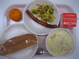 今日は米粉を使ったメニューです。だまになりにくくなめらかな仕上がりになります。ウインナーはコンベクションオーブンで焼いたので、パリッと香ばしくおいしかったです