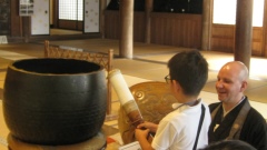 2,3限目に総持寺へ町探検に行ってきました。そもそも,総持寺というのは,「総持寺祖院」ということを知り,とても驚いていました。自分たちが疑問に思ったことをしっかりと質問していました。座禅の座り方には種類があることや,1日に4回鐘を鳴らすこと,そして総持寺は700年前にできたことなど多くのことを学ぶことができました。また,1年間に4万人という観光客がくることを知り,総持寺のすごさを改めて実感していました。 「このような素晴らしい総持寺が近くにあるってすごいことだな」と話している児童がいました。