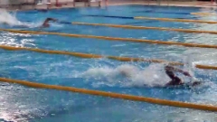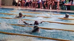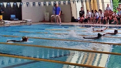 5年以下男子25m背泳ぎ  5年N君(右写真2レーン)45秒7,5年H君(右写真3レーン)36秒6(4位)