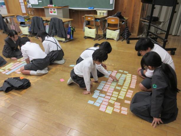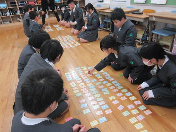 今日は低・中・高学年ごとに百人一首大会が行われました。朝から自分の得意札を必ず取ると張り切っている児童もいました。たくさん札がとれた児童はとてもうれしそうでした。真剣な中にも和やかな雰囲気で、日本の伝統文化に触れる良い機会となりました。