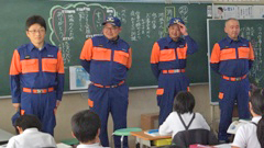 4年生は,門前分団の方々に,地域の消防団の必要性,消防署との違いを教えてもらいました。地域の仲間で活動することで,やりがいがあること,楽しいことがよく伝わりました。自分もやりたいと話す4年生がたくさんいました。(田下)