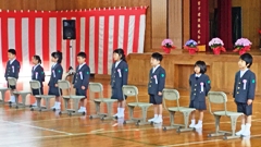 平成最後の新入生は8名。皆元気に入学式を迎えました。私は,式辞で,彼らに3つのお願いを伝えました。1つ目は,「交通事故に気をつけてください」です。2つ目は、「いい挨拶をしてください」です。3つ目は、「友だちと仲良くしてください」です。まだまだ幼い彼らを見て,これからの成長が楽しみになると同時に,責任の重さも感じました。保護者の皆様,これから6年間,よろしくお願いします。