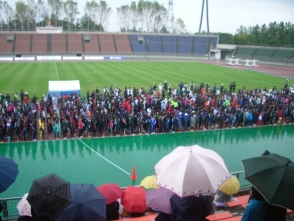 雨の中、頑張って走る子ども達に、スタンドいっぱいに大きな声援が響いていました。