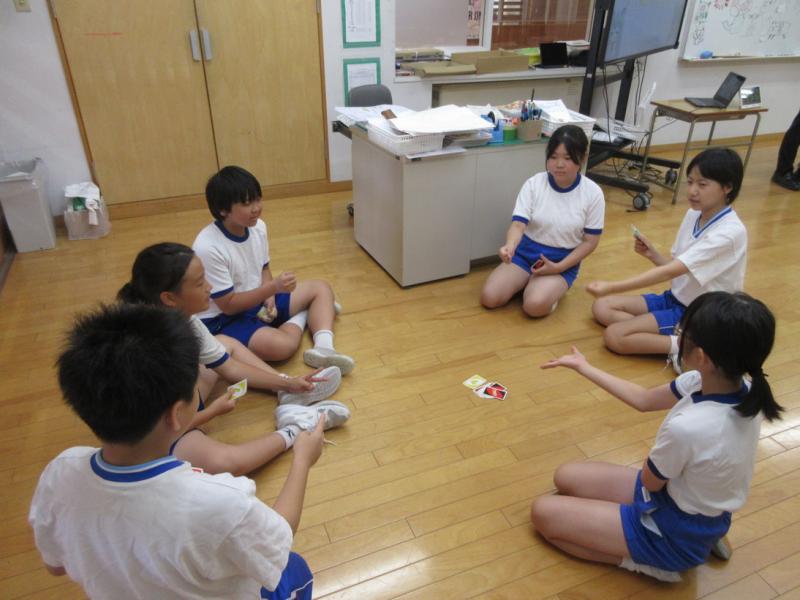 1学期も終わりに近づき、今日はお楽しみ会をしている学級が多かったです。ドッチボールで体を動かしたり、英語UNOをしたりと、とても楽しそうでした。1・2年生の宝探しでは、全員お宝をゲットできて満面の笑みでした。