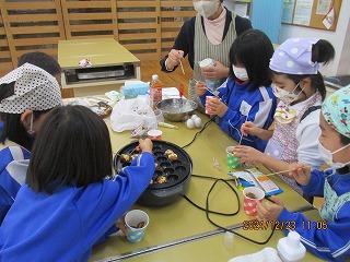 自分たちの力で「たこ焼き」を作りました。出来上がるまでドキドキです。