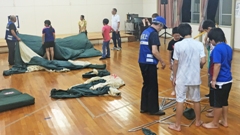 その後,19時30分からテント作りが始まりました。ボランティアでおいでくださった防災士の坂下さんと森本さんに教わりながら,基本自分たちで考えて作り上げました。(残念ながら,最後まで見届けられませんでした。)この日は2名がテントで寝たそうです。お世話下さっている皆様,ありがとうございます。